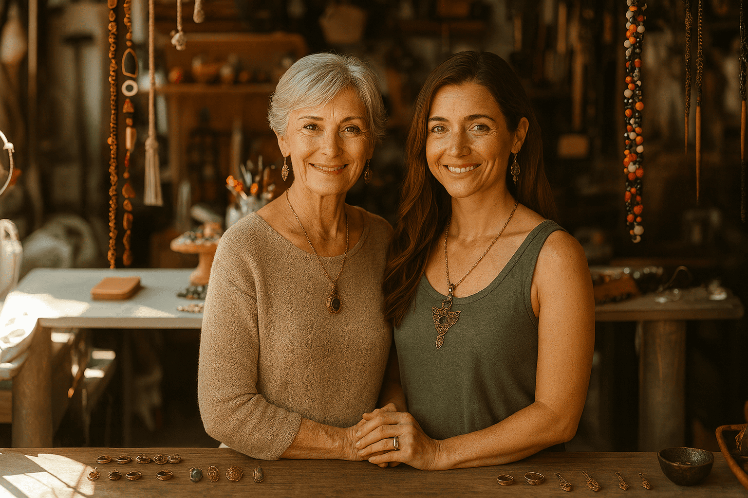 For over 30 years, Eleanor and her daughter Clara have dedicated their days to creating artisanal jewelry in their sun-drenched workshop, surrounded by cups of coffee, bursts of laughter, and the scent of fresh flowers.